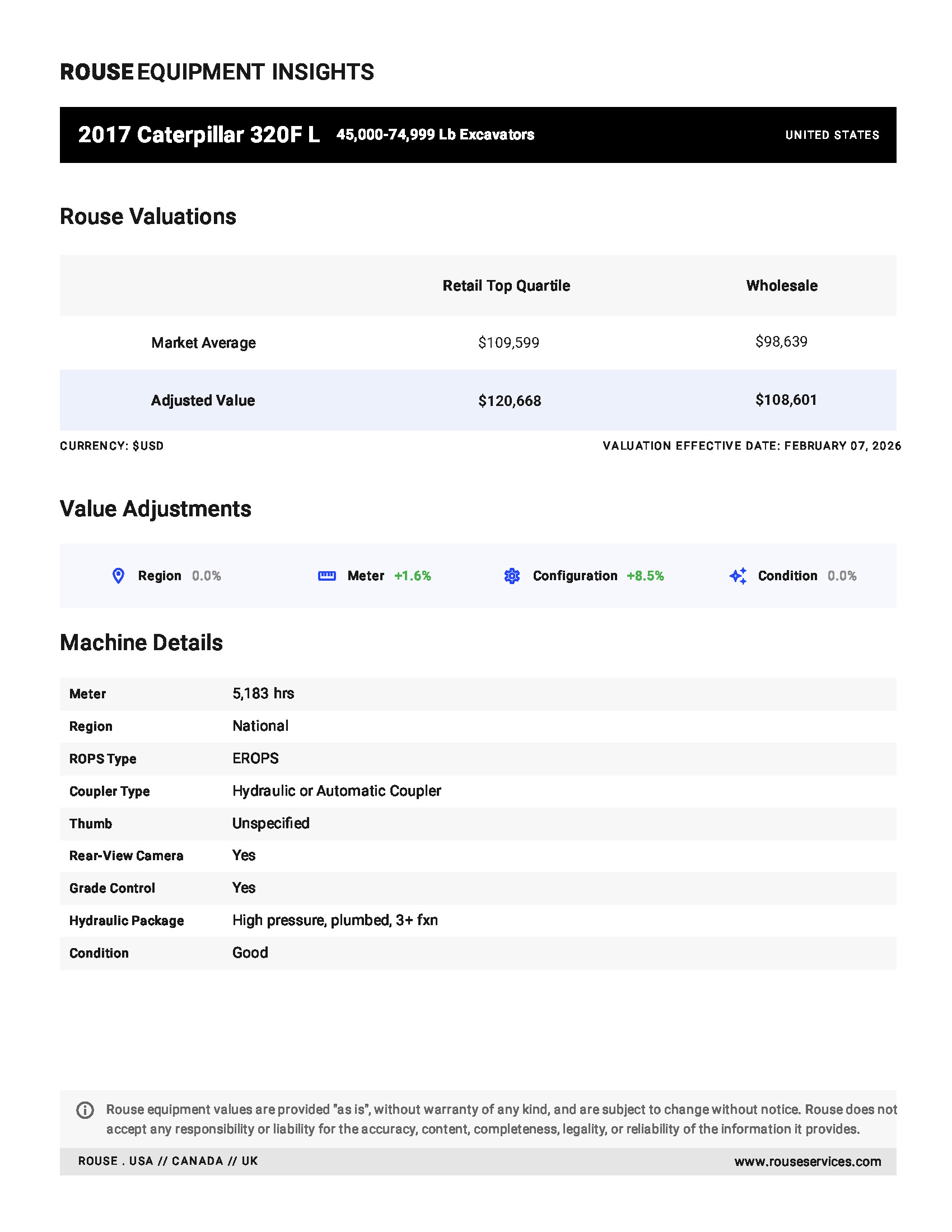 2017 CATERPILLAR 320FL EXCAVATOR, QUICK COUPLER AND ATTACH, 360 CAMERAS, AUXILIARY HYDRAULICS, HYDRAULIC THUMB, HEAVY DUTY BUCKET, COLD A/C – WORK READY